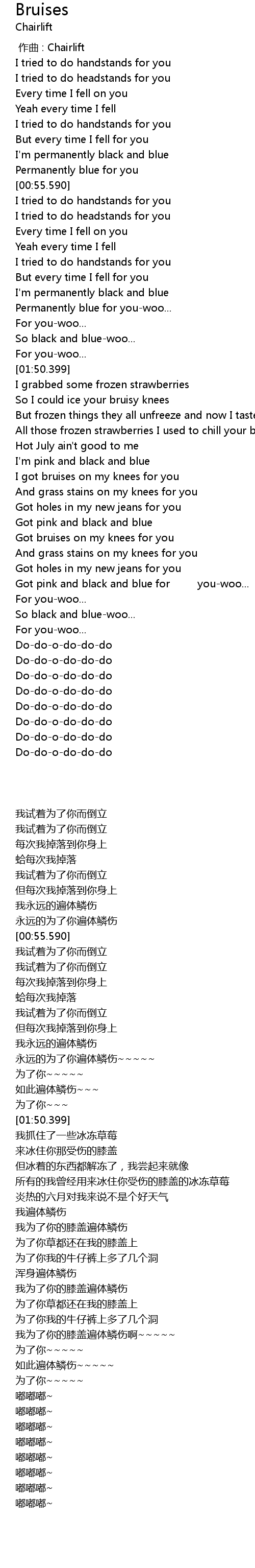 | [02:17.600] | All those frozen strawberries I used to chill your bruisy knees |
