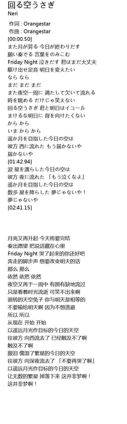| [00:56.29] | 迴转的天空兔子 你与明天是相等的 |