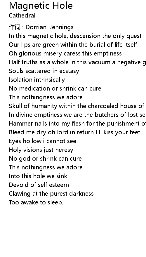 | In this magnetic hole, descension the only quest | |