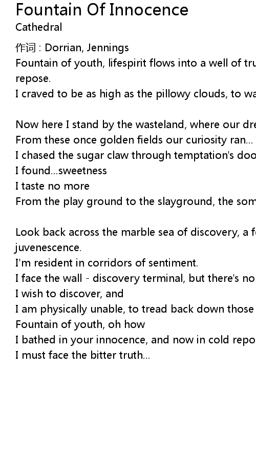 | Fountain of youth, lifespirit flows into a well of truths, of cold and dim repose. | |