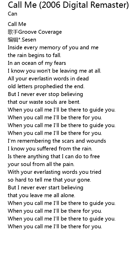 | 歌曲 | Call Me (2006 Digital Remaster) |