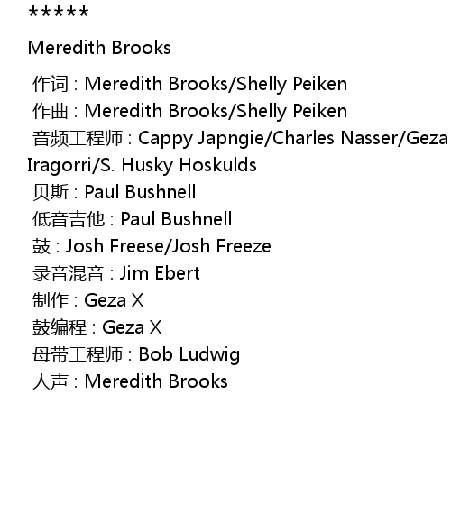 | [00:00.000] | 作词 : Meredith Brooks/Shelly Peiken |