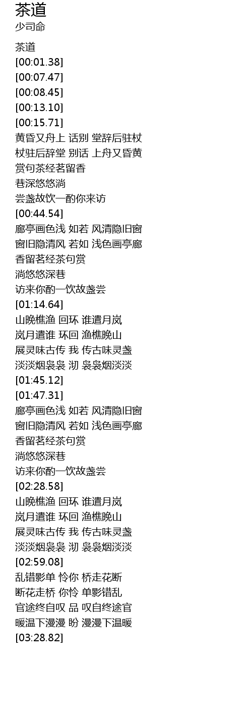 | [01:38.16] | 淡淡烟袅袅 沏 袅袅烟淡淡 |