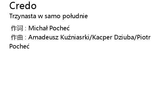 | [00:00.000] | zuo qu : Amadeusz Ku niasrki Kacper Dziuba Piotr Pochec Micha Poche |