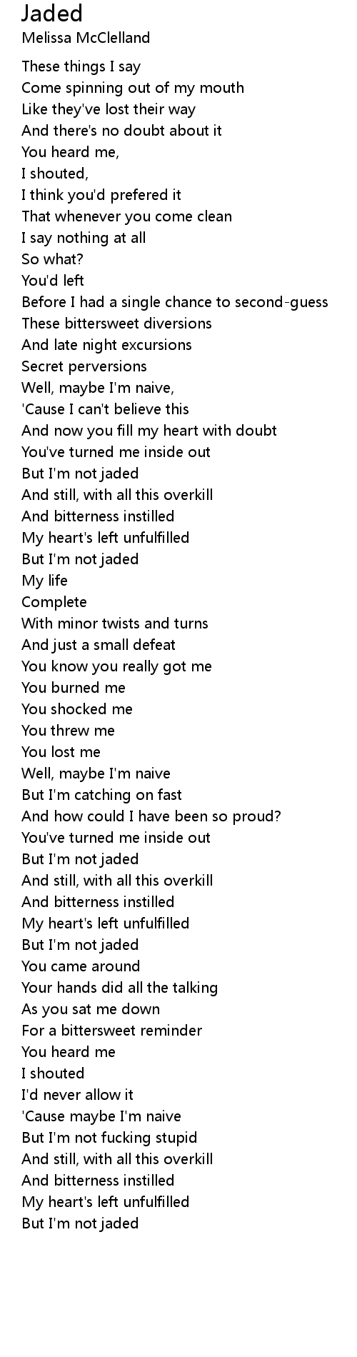 But I'm not jaded |