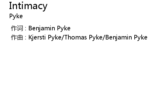 | [00:00.000] | 作曲 : Kjersti Pyke/Thomas Pyke/Benjamin Pyke |