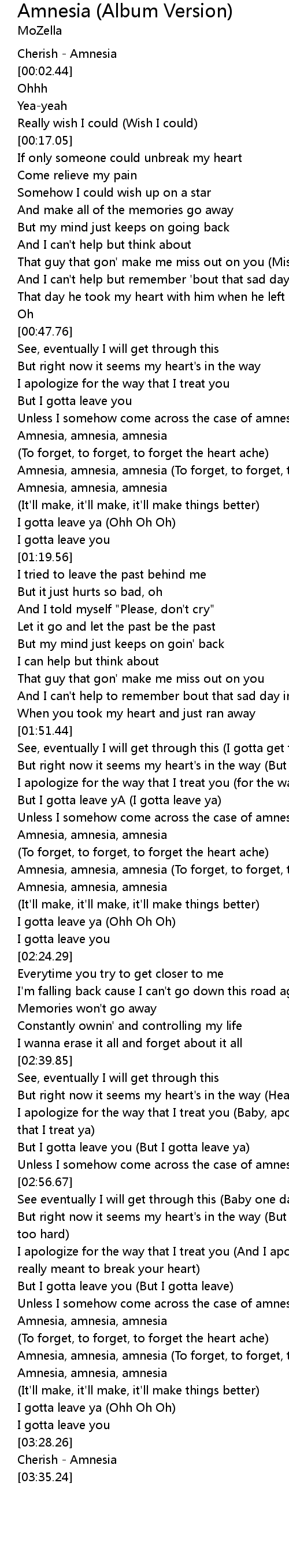 | [03:19.87] | Amnesia, amnesia, amnesia |