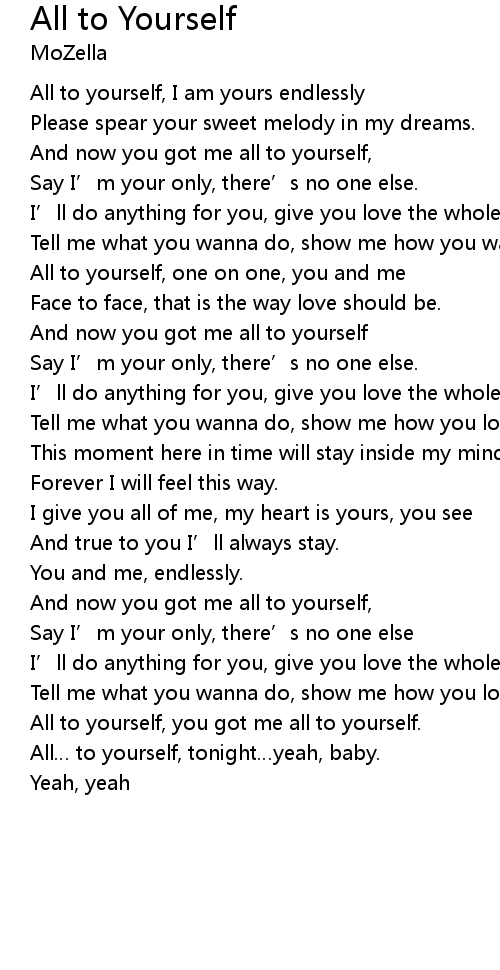 | All to yourself, you got me all to yourself. | |