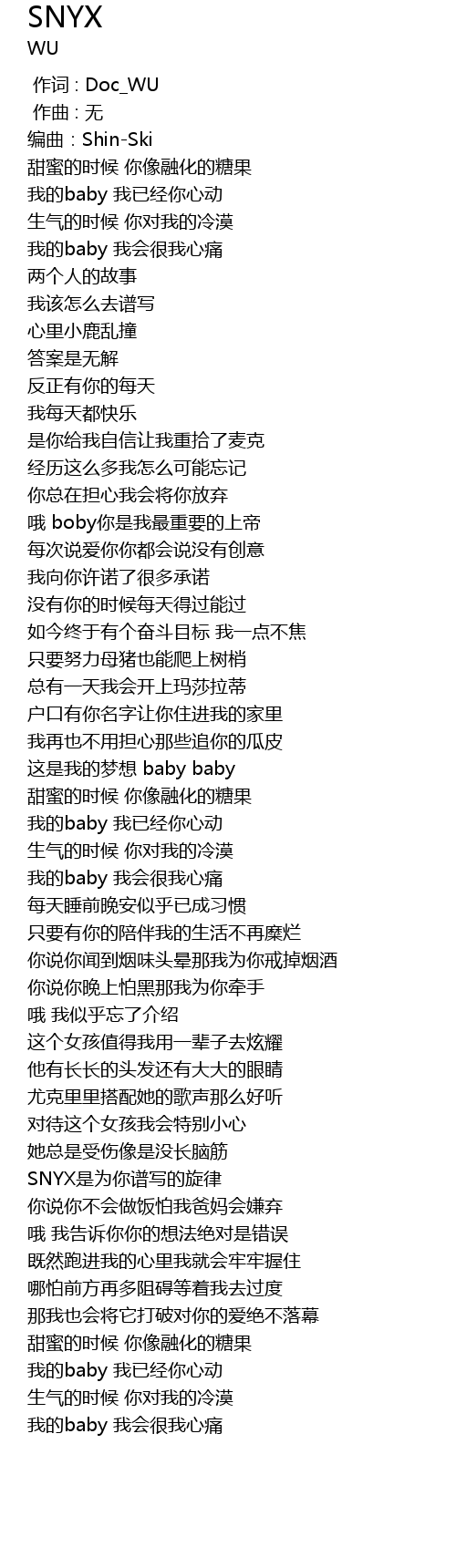 | [00:00.000] | 作词 : Doc_WU |
