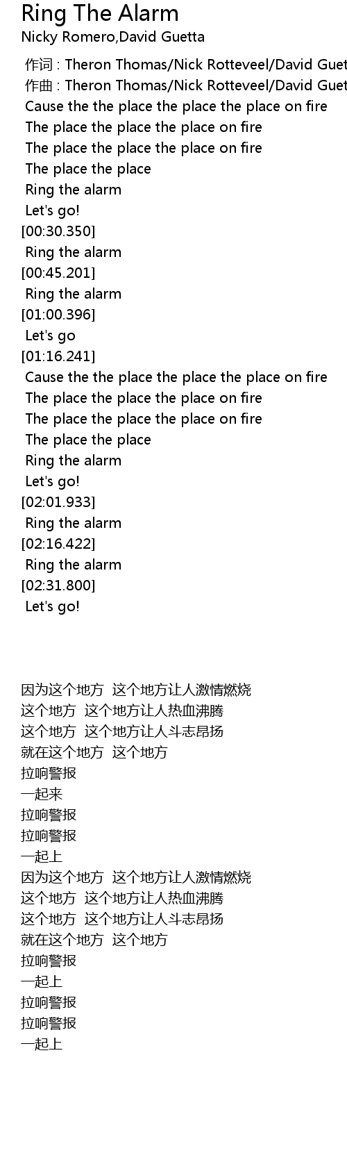| [02:30.003] | Ring the alarm |
