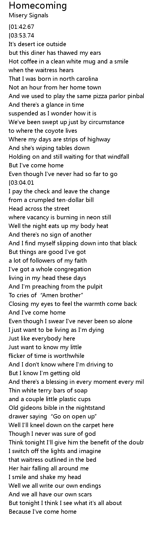 | [02:49.16] | And I' ve come home |
