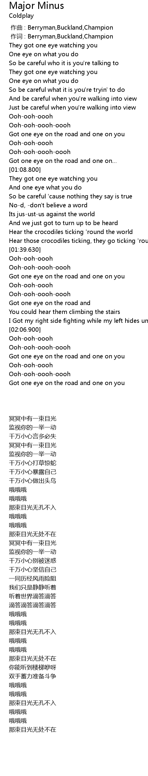 | [00:01.00] | zuo ci : Berryman, Buckland, Champion |
