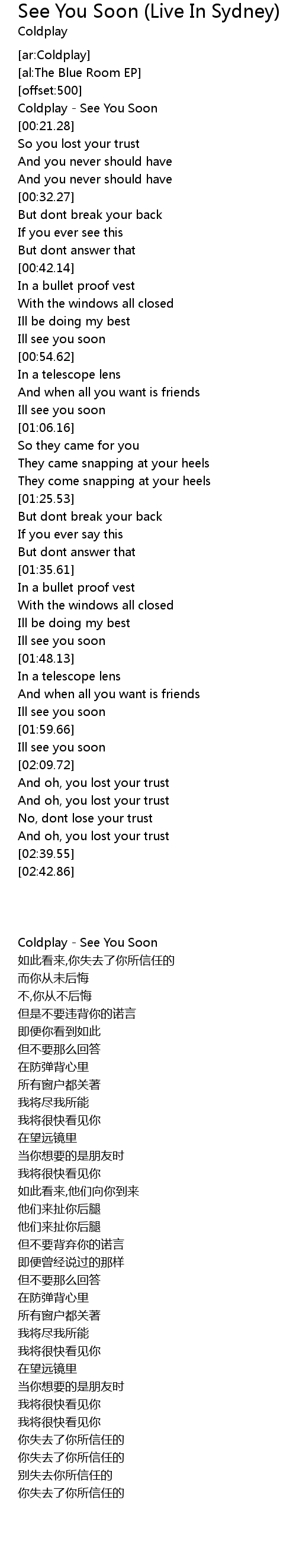 Coldplay - See You Soon |