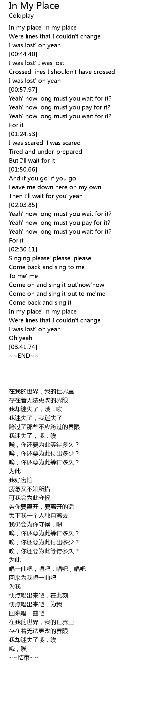 In my place' in my place |