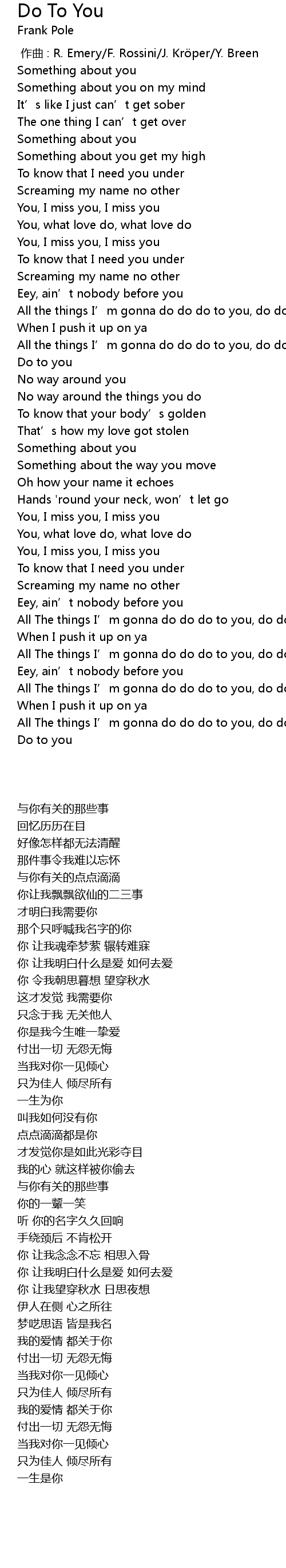 | 歌曲 | Do To You |