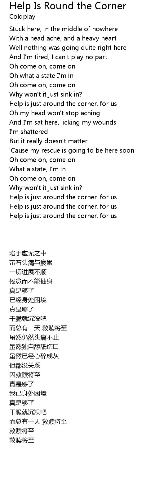 | [02:18.259] | Help is just around the corner, for us |