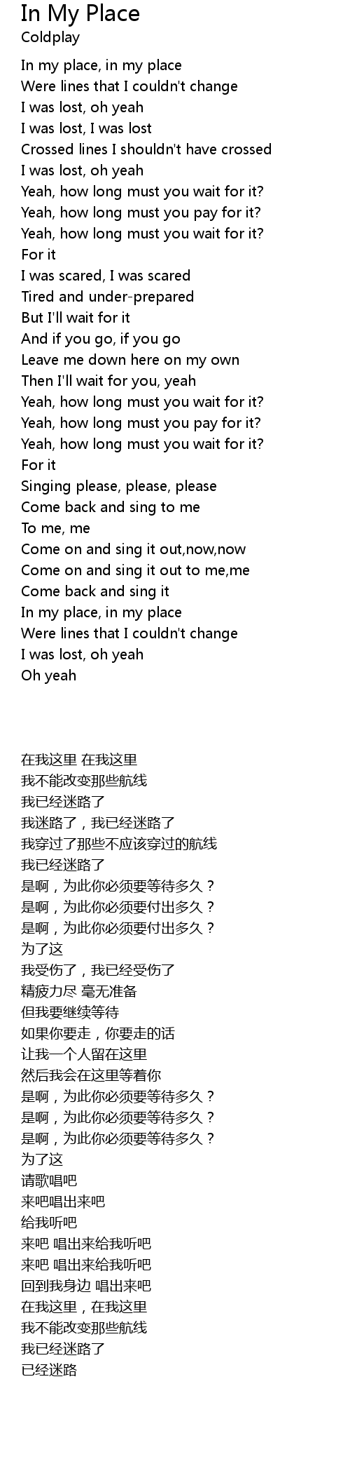 In my place, in my place |