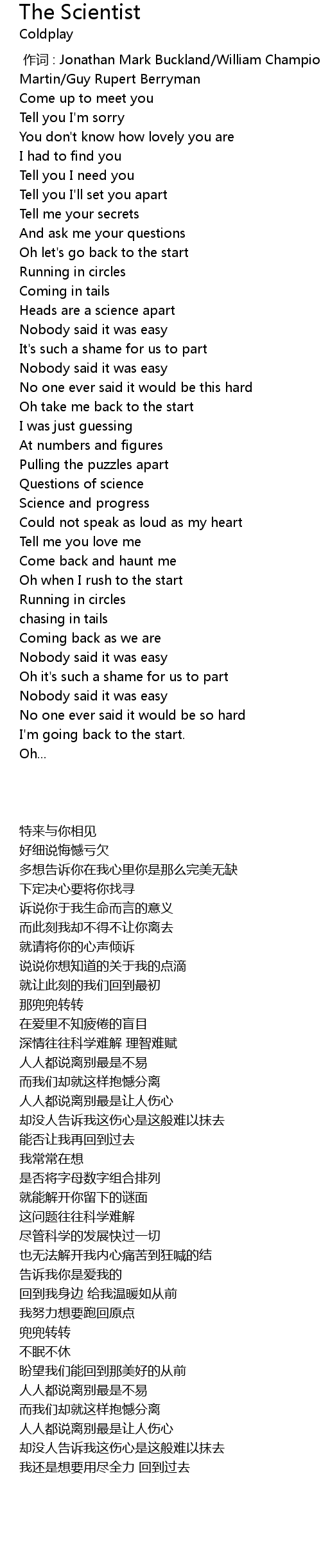 | 歌曲 | The Scientist |