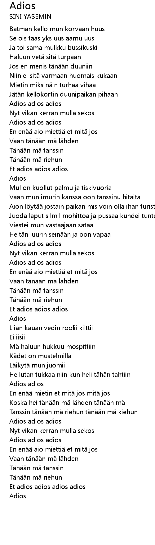 | [01:31.95] | Adios adios adios |