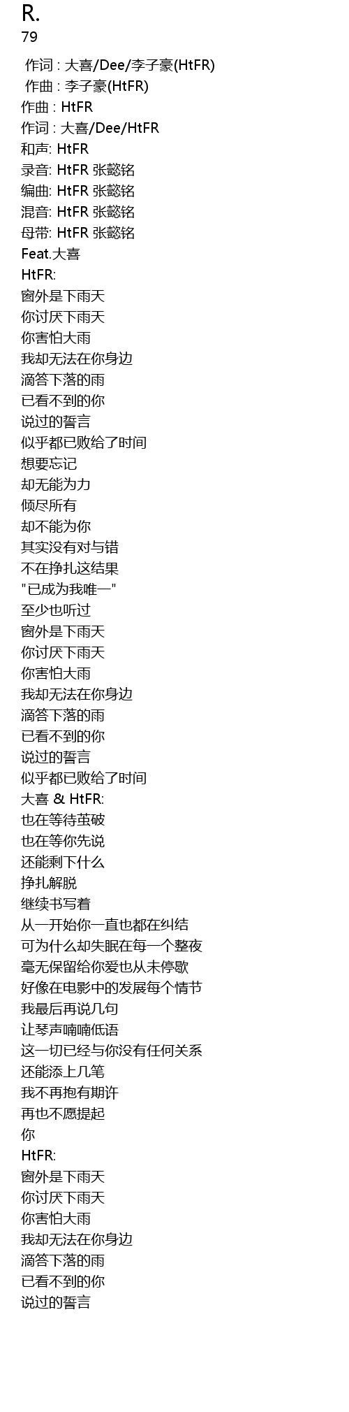 | [00:11.437] | 混音: HtFR 张懿铭 |