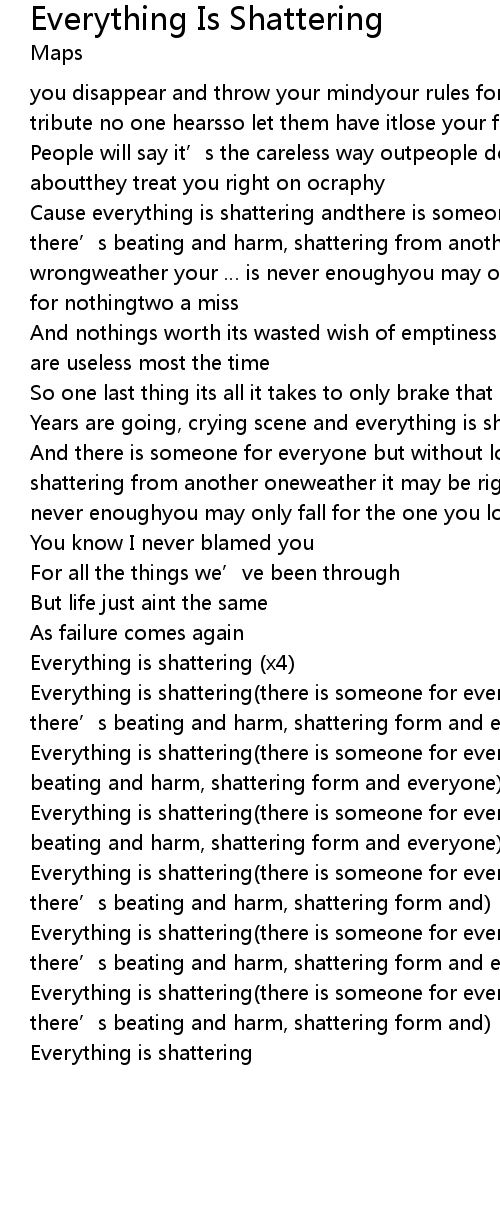 | Everything is shattering(there is someone for everyone but without love there’s beating and harm, shattering form and) | |