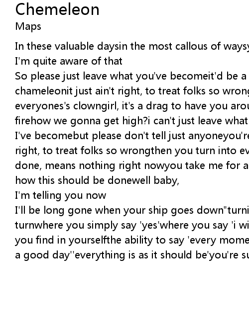 So please just leave what you've becomeit'd be a mess for anyoneyou're such a chameleonit just ain't right, to treat folks so wrongthen you turn into everyones's clowngirl, it's a drag to have you aroundthings we lost in the firehow we gonna get high?i can't just leave what |
