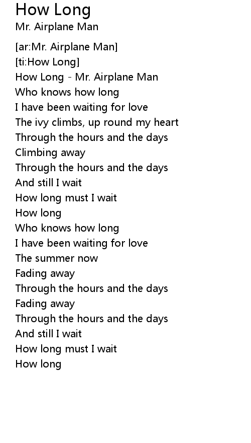 [00:08.01] How Long - Mr. Airplane Man