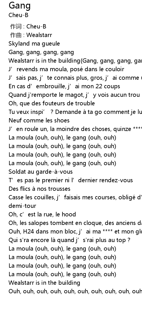 | [00:44.70] | La moula ouh, ouh, le gang ouh, ouh |