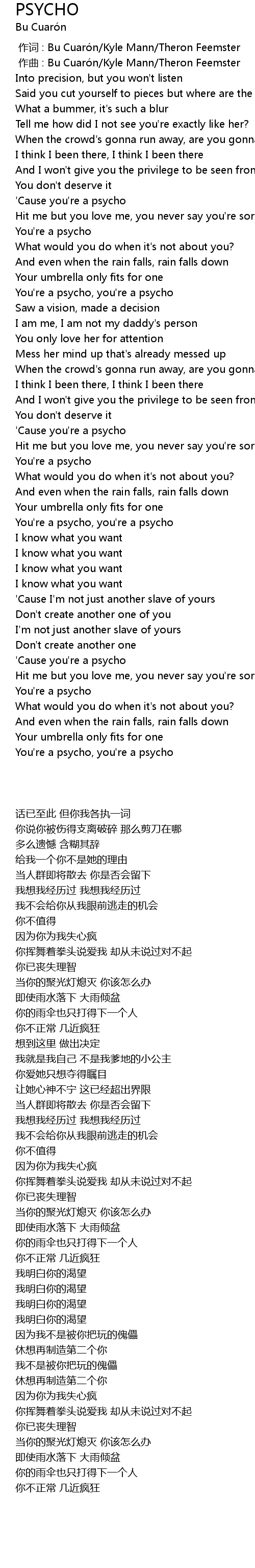 | [02:19.49] | You' re a psycho, you' re a psycho |