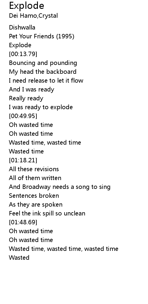 | [02:03.78] | Wasted time, wasted time, wasted time |