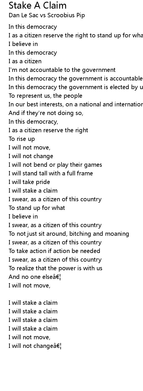 | I will stake a claim | |