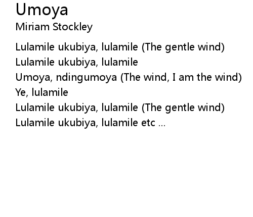 | Umoya, ndingumoya (The wind, I am the wind) | |