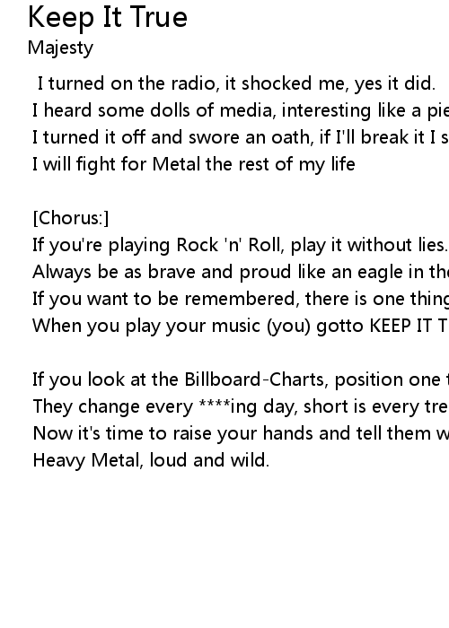 | When you play your music (you) gotto KEEP IT TRUE | |