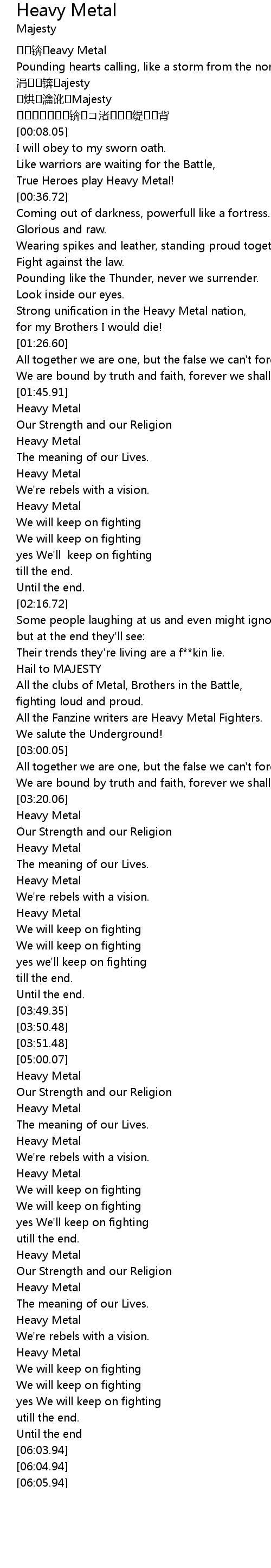 | [05:35.00] | Heavy Metal |