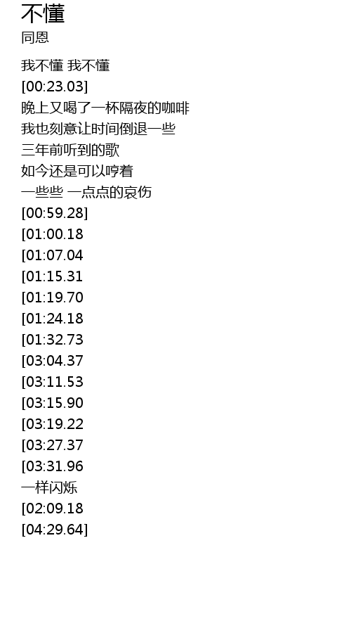 | [03:40.20][03:04.37][01:33.56] | 我不懂 时间像风吹了就痛 |