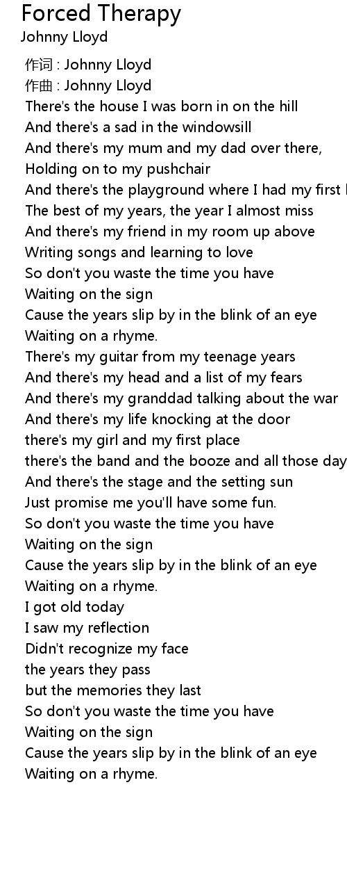 | [00:00.000] | 作词 : Johnny Lloyd |