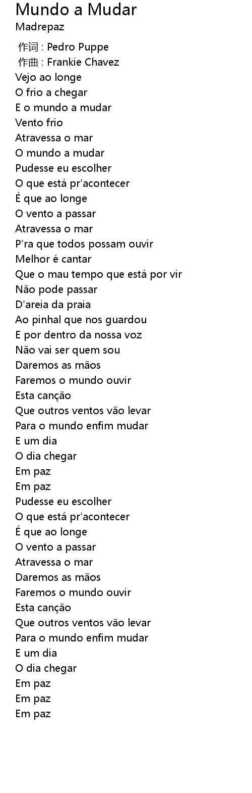 | 歌曲 | Mundo a Mudar |