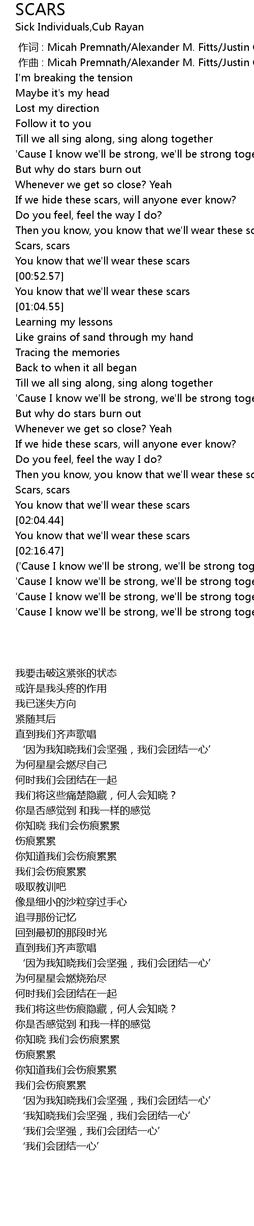 | [01:54.21] | Then you know, you know that we'll wear these scars |