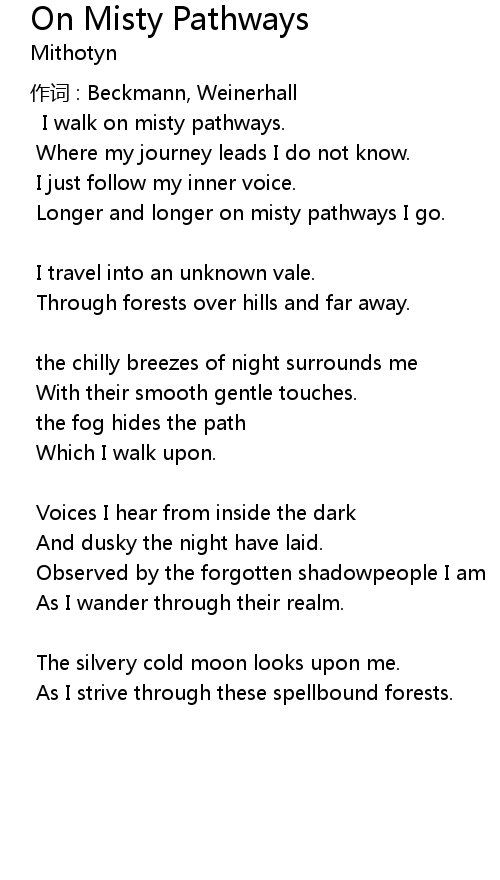 | I walk on misty pathways. | |