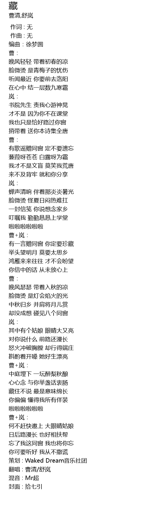 | [02:46.328] | 策划 : Waked Dream音乐社团 |