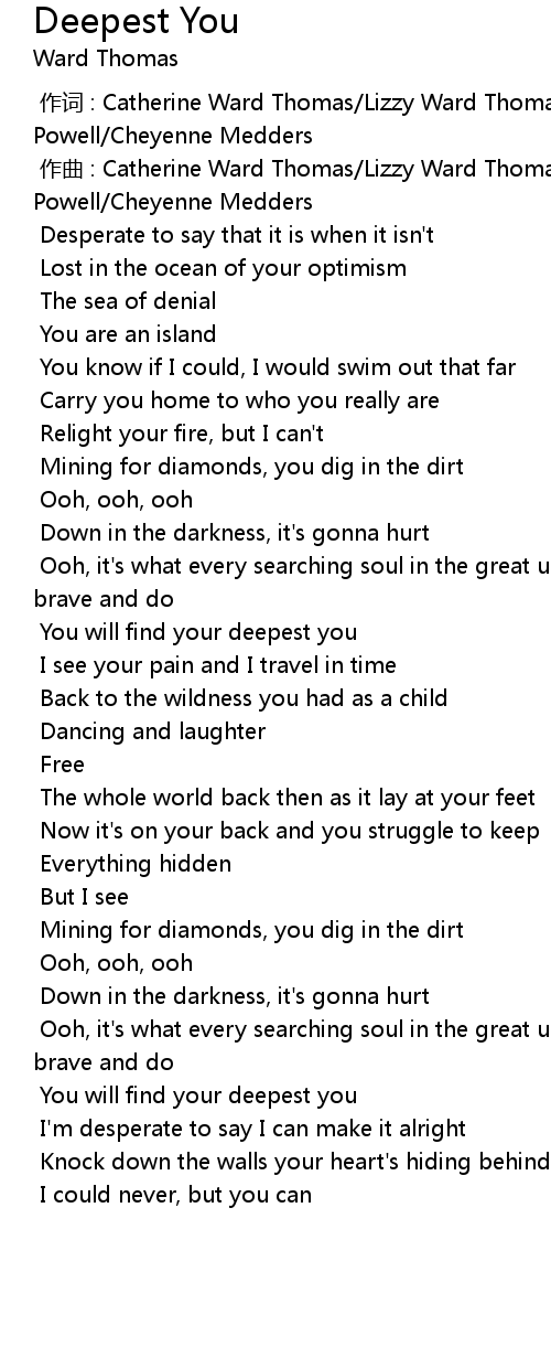 | [00:00.000] | 作词 : Catherine Ward Thomas/Lizzy Ward Thomas/Rebekah Powell/Cheyenne Medders |