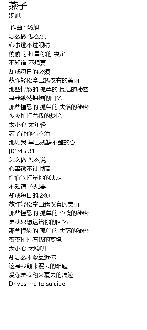| [03:22.00] | Drives me to suicide |