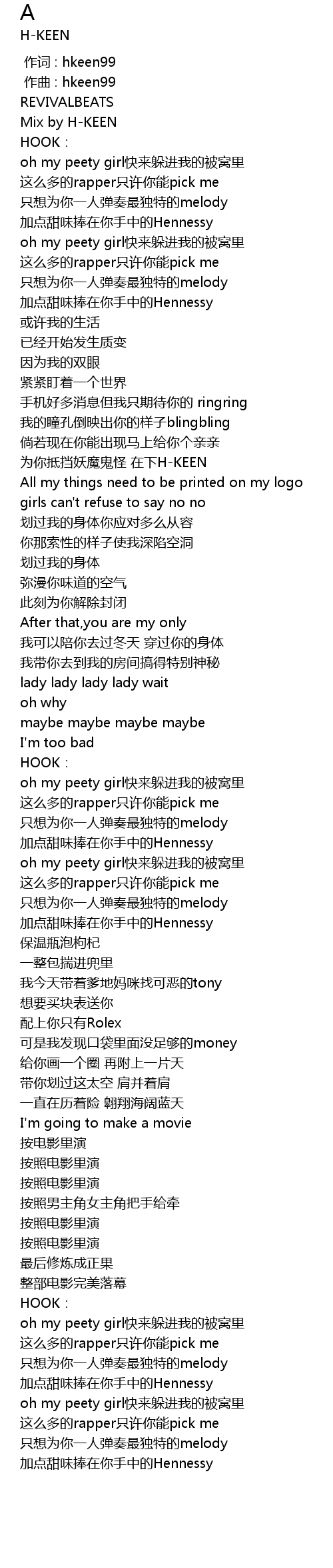 | [00:00.000] | 作词 : hkeen99 |
