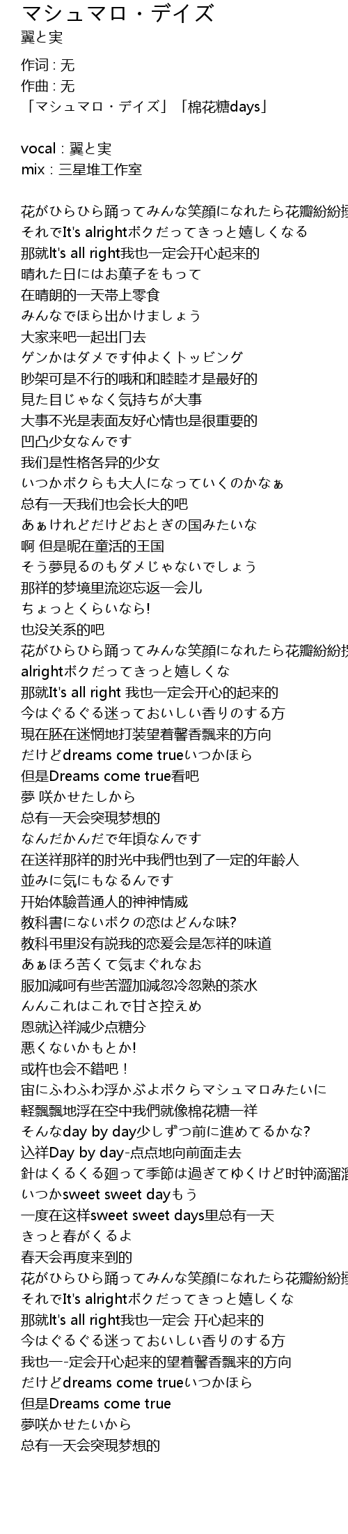 | 花がひらひら踊ってみんな笑顔になれたら花瓣紛紛拐搦地起舞大家都能露出笑容的活それでIt's alrightボクだってきっと嬉しくな | |