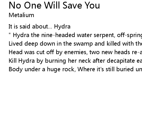| 歌曲 | No One Will Save You |