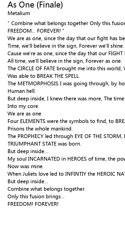 Cause we're as one, since the day that our FIGHT has begun, Till the end of |