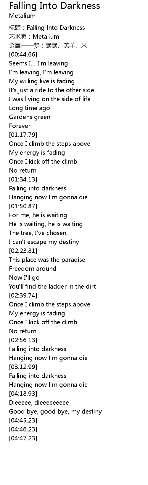 | [01:34.26] | Falling into darkness |