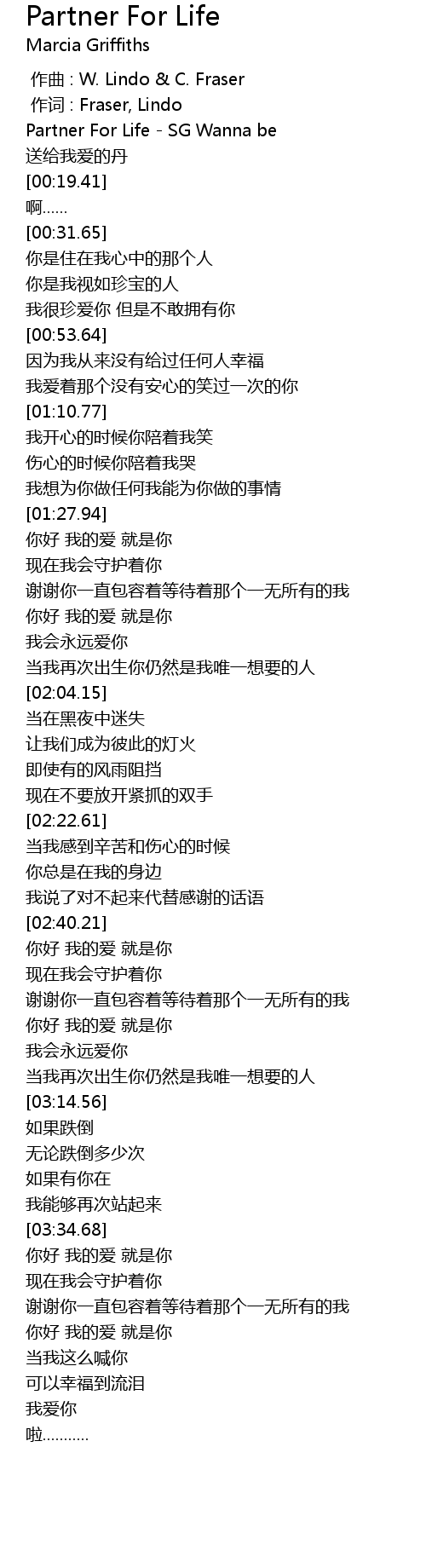 | [00:02.14] | Partner For Life - SG Wanna be |