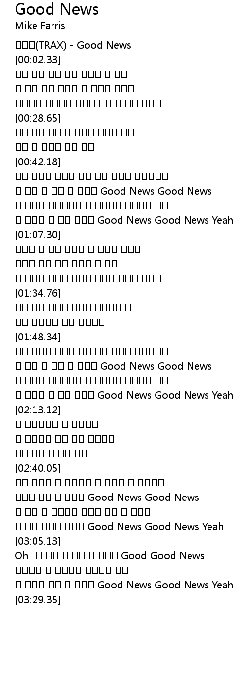 | [00:00.07] | 트랙스(TRAX) - Good News |