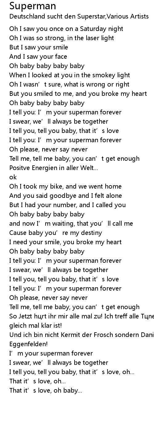 | [00:39.51] | I tell you: I’m your superman forever |